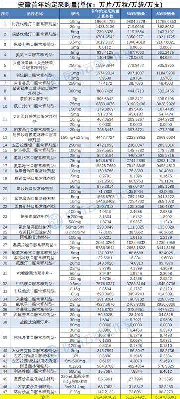 約定采購量:各品種首年約定采購量按以下規(guī)則確定:實際中選企業(yè)為該地國家集采同品種中選企業(yè)的,為首年約定采購量計算基數(shù)的60%;抗菌藥物,以及實際中選企業(yè)非該地國家集采同品種中選企業(yè)的,為首年約定采購量計算基數(shù)的50%。各省采購量具體詳見文末附表。