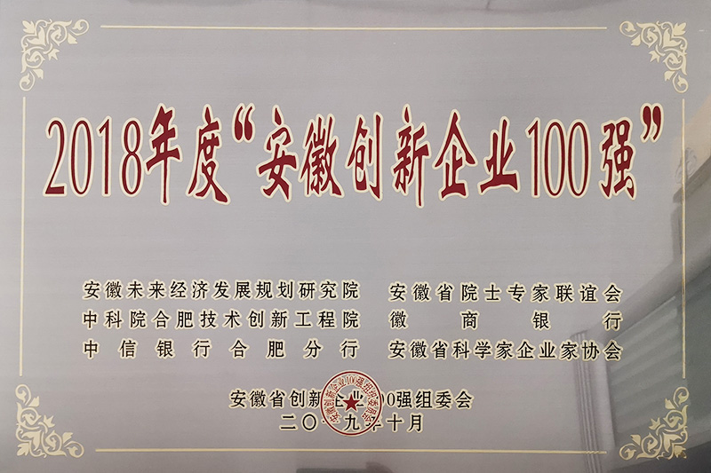 2018年度“安徽創(chuàng)新企業(yè)100強(qiáng)